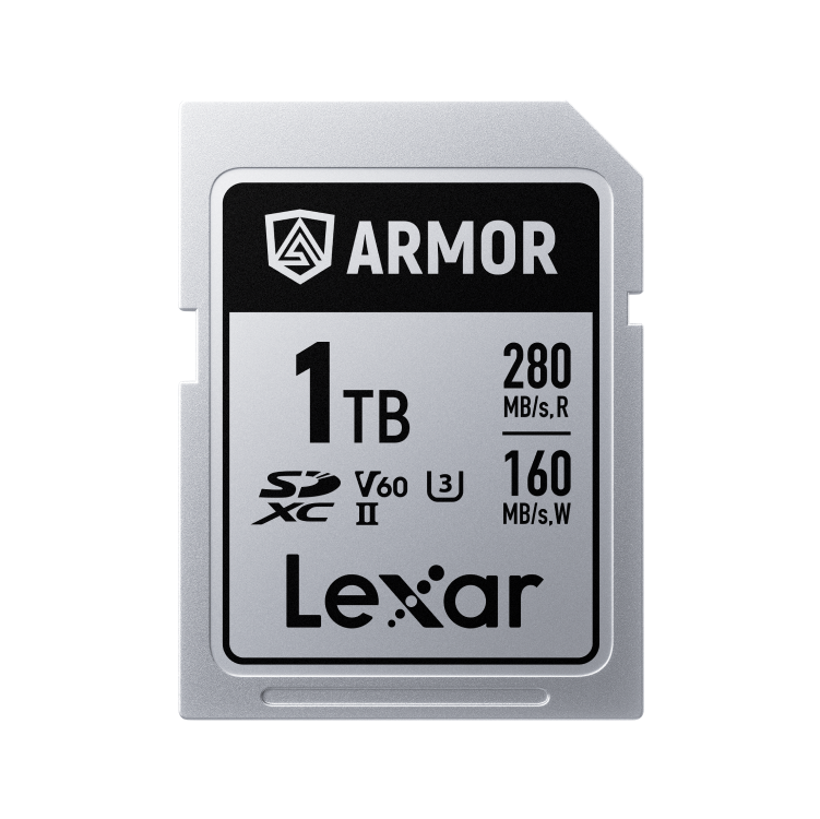 The Lexar 1TB ARMOR SILVER PRO SDXC UHS-II card offers maximum capacity, exceptional durability, and professional-grade performance—with stainless-steel construction, IP68 protection, 280 MB/s read and 160 MB/s write speeds, and a lifetime warranty.