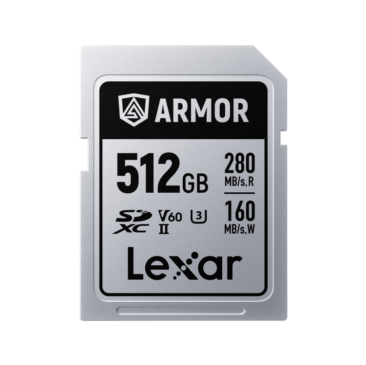 The Lexar 512GB ARMOR SILVER PRO SDXC UHS-II card delivers top-tier performance and extreme durability with stainless-steel construction, IP68 protection, blazing read/write speeds, and a lifetime warranty — perfect for pro videographers and photographers working in harsh environments.