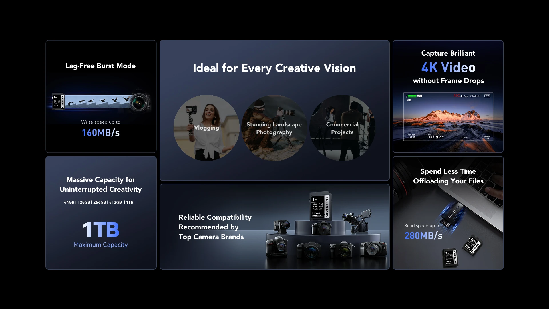 If you're looking for durable, high-speed memory and storage solutions that you can trust, Lexar is a top choice. With cutting-edge technology and a commitment to customer satisfaction, Lexar helps you store, transfer, and protect your data with confidence.