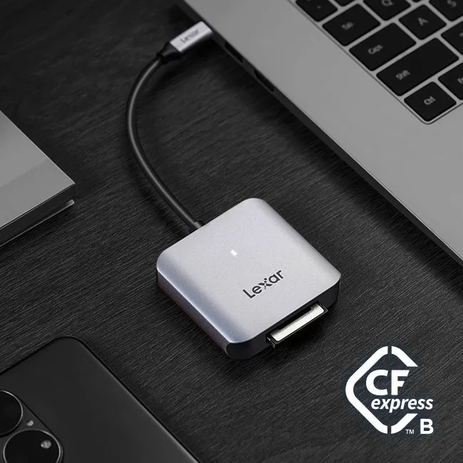 The Lexar CFexpress Type B USB-C Reader is built for professionals, delivering up to 10Gbps transfers over USB-C for a fast, efficient workflow from shoot to post. Compact, durable, and ready for on-the-go production environments.