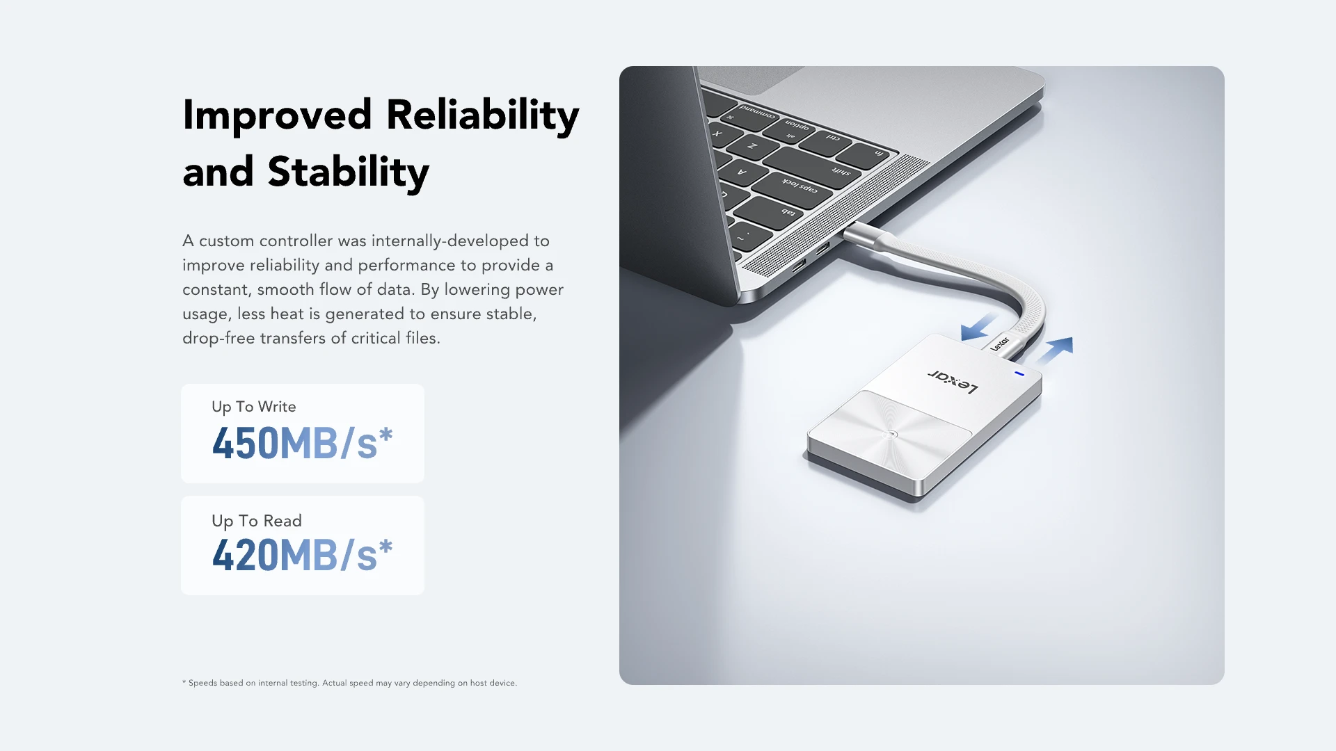 | Performance | Up to 450MB/s Read, 420MB/s Write |