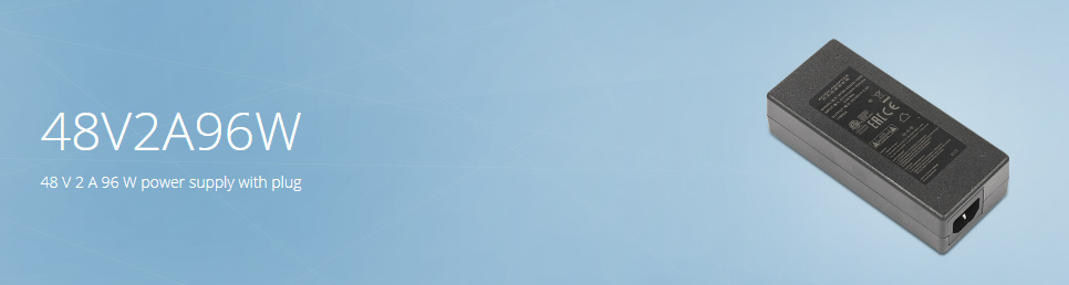 48 V 2 A 96 W power supply, to be used with our products that support 48 V POE output, like hEX PoE and CRS112-8P-4S-IN. It’s providing 30% more current than the old model 48POW (48 V 1.46 A 70 W), allowing more power per port.
