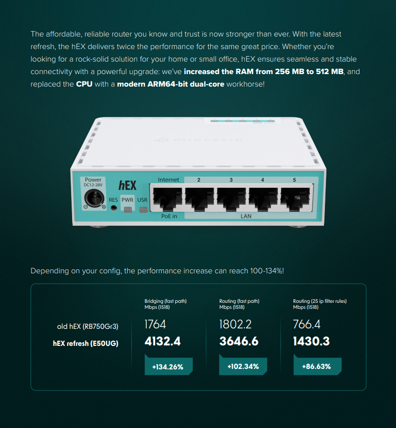 | MikroTik E50UG | Router | Compact, 5x Gigabit Ports, USB, Affordable & Efficient | SOHO, Small Networks |