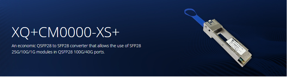 MikroTik XQ+CM0000-XS+ is an economic QSFP28 to SFP28 converter that enables the use of SFP28 25G/10G/1G modules in QSFP28 100G/40G ports, providing flexibility and cost-efficiency for network upgrades.