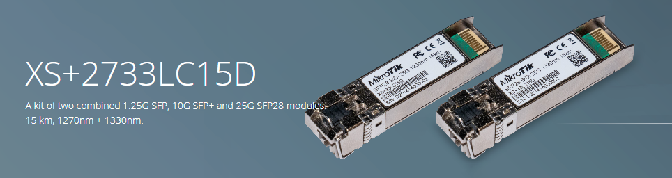 Mikrotik XS+2733LC15D | Dual 1.25G, 10G, 25G SFP Modules Kit (15km)
