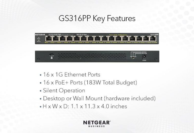 The Netgear GS116PP is a powerful and reliable 16-port Gigabit Ethernet PoE+ switch, designed for small businesses, home offices, and professional environments requiring high-performance and flexible networking solutions. Netgear GS116PP comes With an impressive 183W PoE power budget, the Netgear GS116PP delivers both data and power to multiple PoE-enabled devices such as IP cameras, wireless access points, VoIP phones, and smart IoT devices through a single Ethernet cable.