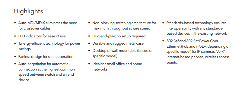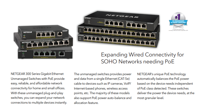 Netgear GS305P comes With a total PoE power budget of 55W, it supports efficient and flexible deployment of powered devices without the need for additional power adapters. GS305P has plug-and-play functionality ensures hassle-free setup—just connect your devices, and the switch does the rest.
