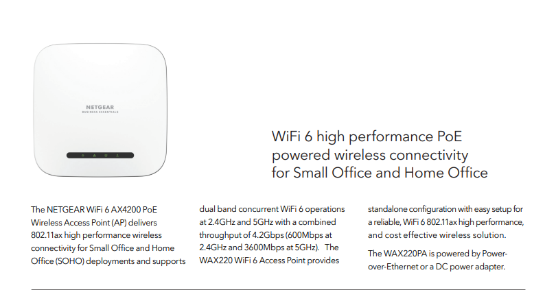 Netgear WAX220 WiFi 6 AX4200 Dual-band Access Point with Multi-Gig PoE