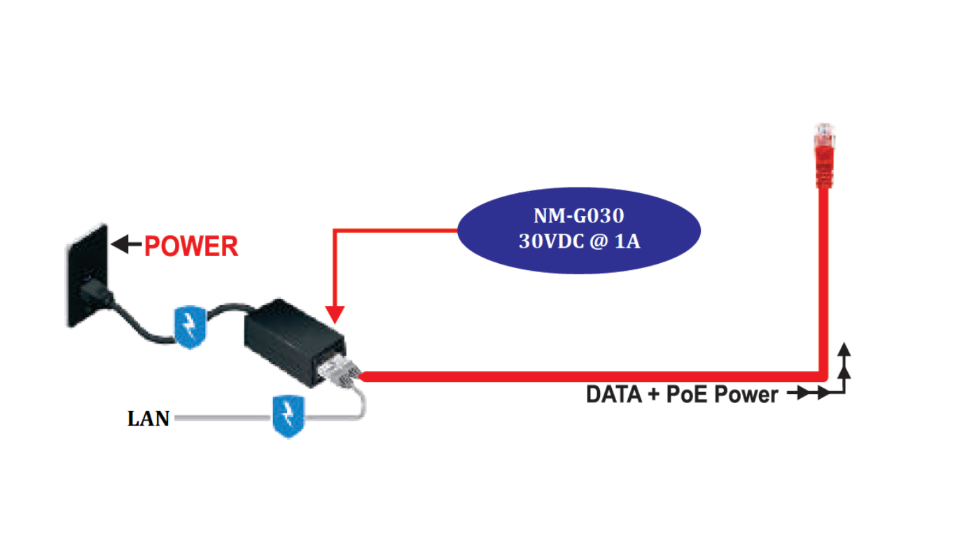 Netstar 30VDC @1A Gigabit Passive PoE Injector (NM-G030)
