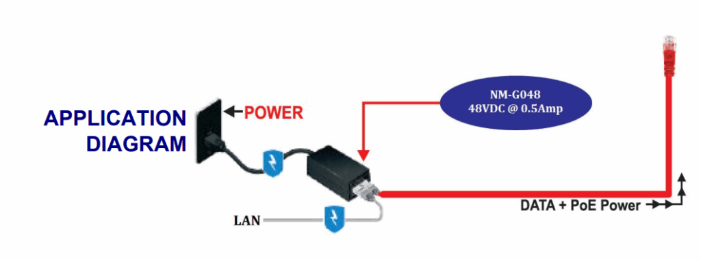 - NM-G024: 24VDC @ 1A | Gigabit | Equivalent: POE24V-12W-G, POE2412G