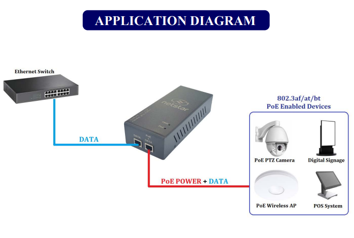 Netstar NM-GPOE90BT has a compact and durable build makes it suitable for business, industrial, and commercial applications, providing a cost-effective and powerful solution for expanding high-power PoE networks.
