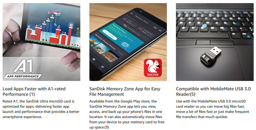 SanDisk® cards are tested with thousands of devices to ensure they work flawlessly with any compatible product. Proprietary Flash Management techniques8 help deliver industry leading in-house produced NAND. SanDisk Ultra® microSD™ UHS-I cards are backed by a 10-year limited warranty.9