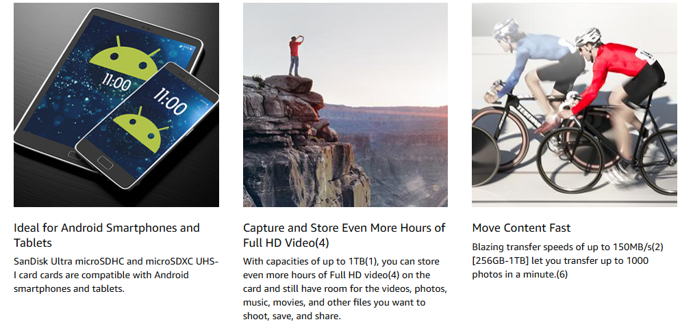 SanDisk® cards are tested with thousands of devices to ensure they work flawlessly with any compatible product. Proprietary Flash Management techniques8 help deliver industry leading in-house produced NAND. SanDisk Ultra® microSD™ UHS-I cards are backed by a 10-year limited warranty.9