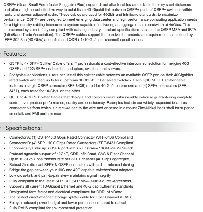 The Syrotech GOXQ-CAB-QSFP-P3M is a 3-meter long 40G QSFP+ to QSFP+ Passive Direct Attach Copper (DAC) Cable. It offers reliable, high-speed data transmission with low power consumption, providing cost-effective connectivity for short-range connections between network devices such as switches, servers, and storage systems in 40GbE networks. This passive DAC cable is ideal for use in data centers and high-performance computing environments where high bandwidth and efficient performance are required.