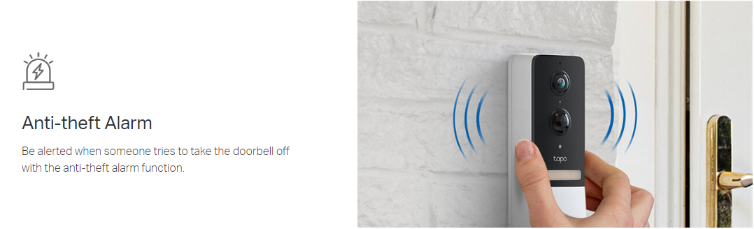 • Anti-theft Alarm: Be alerted when someone trying to take the doorbell off with the anti-theft alarm function.