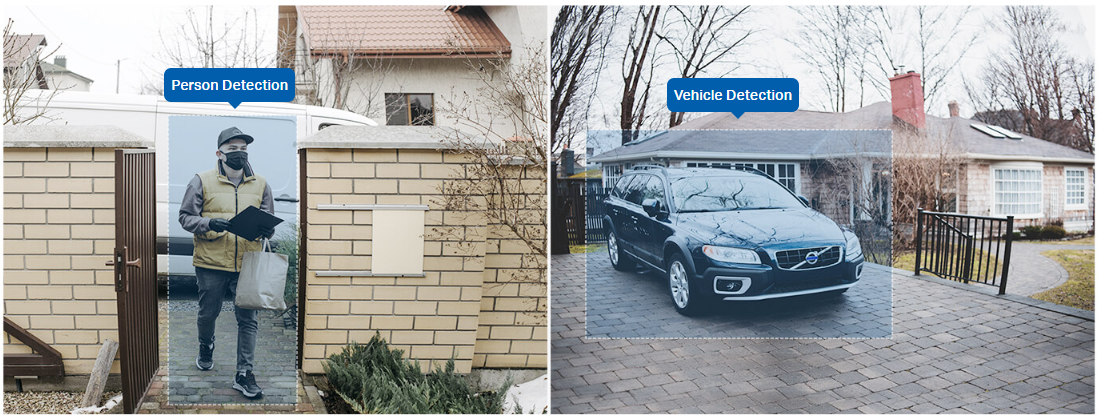 AI DetectionMotion Detection Person Detection Pet Detection Vehicle Detection Package Detection