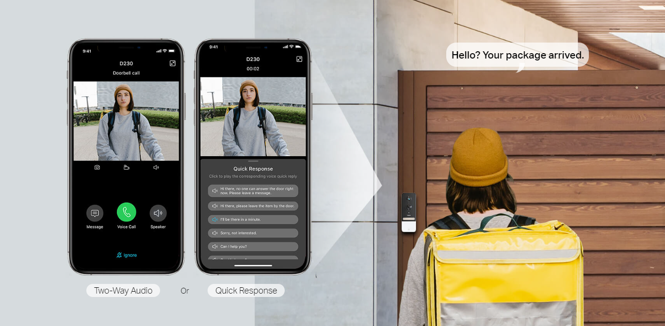 • Multiple Ways to Answer: With two-way audio or a recorded quick response, communicate directly with your deliveries through the Tapo app.