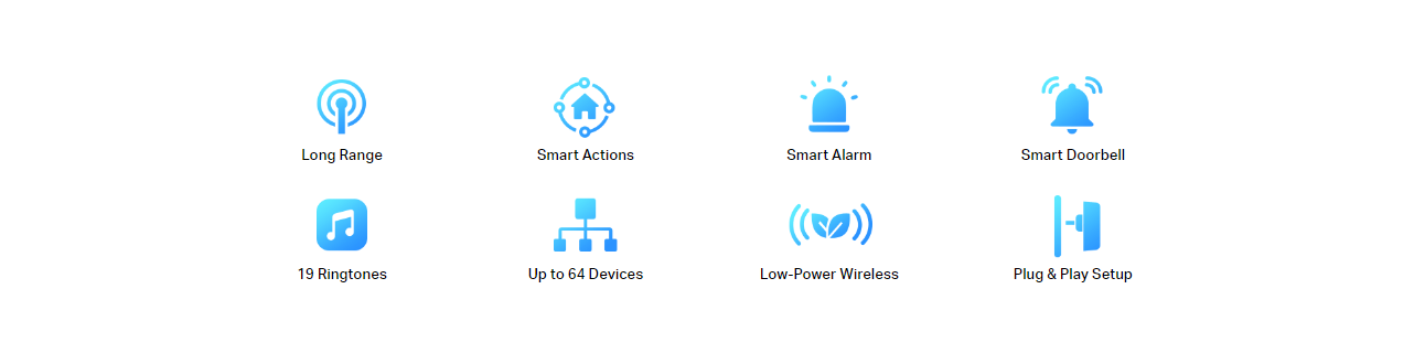 Tapo H100 system offers strong, long-range connections, an energy-efficient wireless protocol for extended standby, smart alarms coordinated with Tapo sensors, customizable smart doorbell options, and support for up to 64 devices for a complete smart home experience.