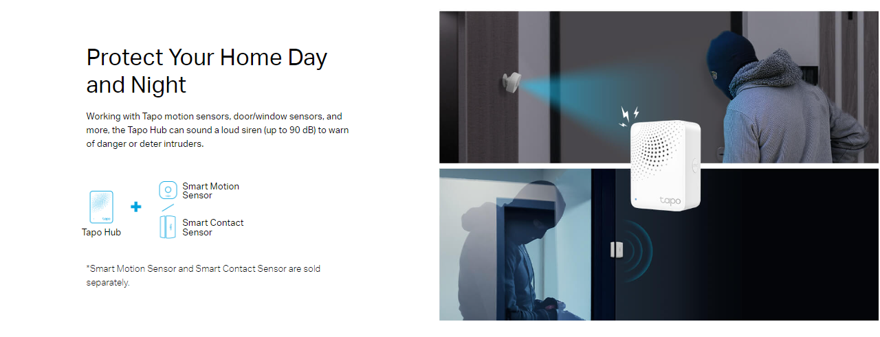 • Smart Alarm – Coordinates with Tapo smart sensors to warn of danger or deter intruders.