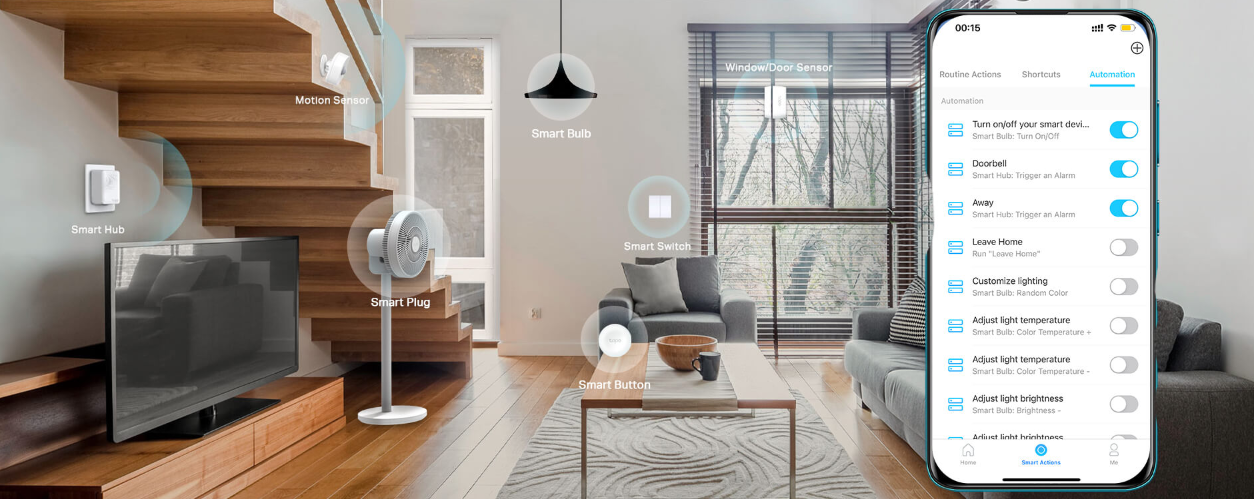 With Tapo Smart Hub Tapo H100, you can trigger a Shortcut or control Tapo devices (such as smart plugs, smart lights and smart switches) based on sensor detection or with a button press.