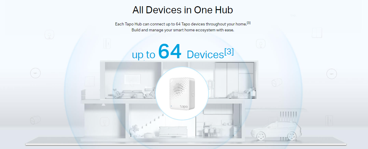 [3] Each Tapo Hub can connect up to a maximum of 64 devices. The actual maximum number of devices allowed may vary according to type of device.