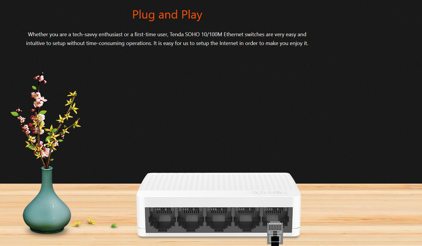 The Tenda S105 is small, lightweight, and can be placed almost anywhere, making it an excellent choice for home offices, small businesses, or adding additional wired connections to your existing network.