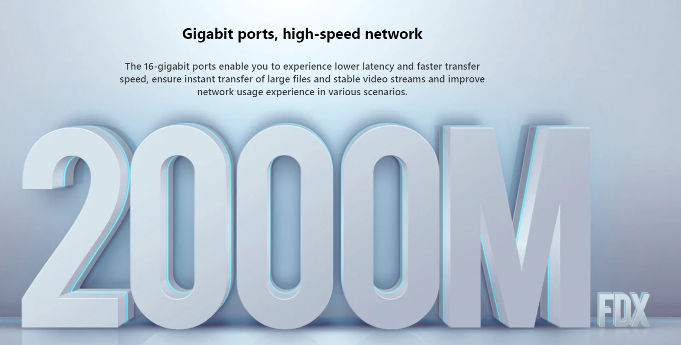 16*10/100/1000 Mbps auto-negotiation RJ45 ports, up to 2000 Mbps of full duplex