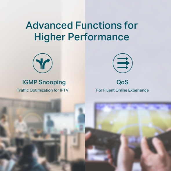 Advanced Features• Compatible With IEEE 802.3af/at Compliant PDs • Mac Address Auto-Learning And Auto-Aging • IEEE 802.3x Flow Control • 802.1p/DSCP QoS • IGMP Snooping • Extend Mode Button (Ports 1–2, Up to 250 m PoE power supply and data transmission) • PoE Auto Recovery (Ports 1-4)