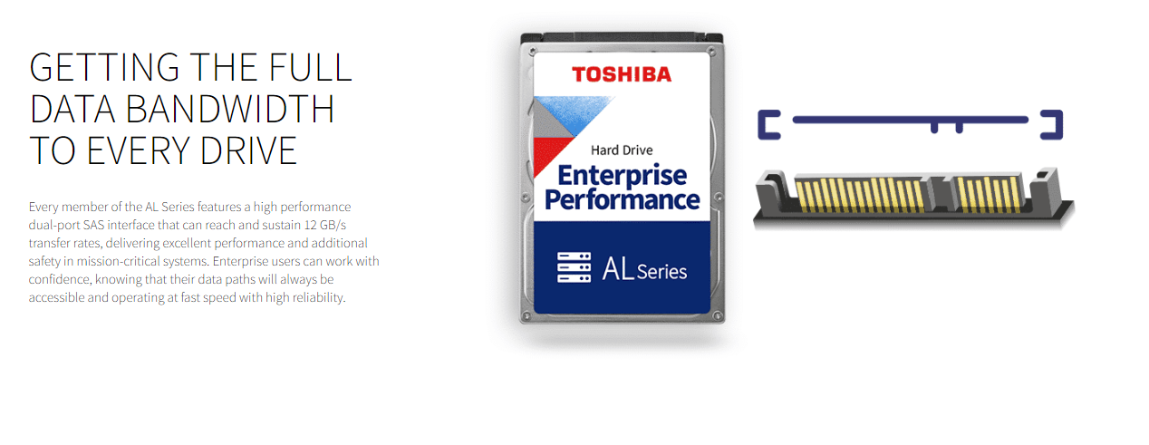 With a range of capacities starting at 300 GB and reaching 2.4 TB and flexible, advanced technology options the Toshiba AL Series Performance 2.4TB SAS AL15SEB24EQ offers the right solution for demanding high-performance and mission-critical enterprise applications.