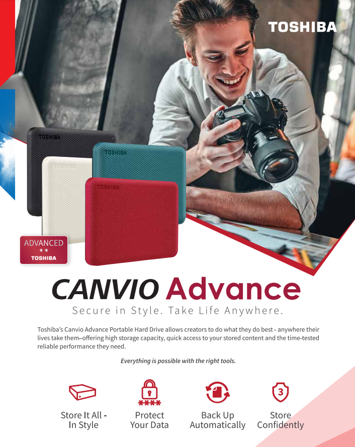 When your interests take you many places, you need a mobile storage solution that fits your lifestyle. The Toshiba Canvio Advance 1TB HDTCA10AK3AA is the perfect data companion. Whether for back-ups at home or data access on the road, this stylish hard drive makes it perfect for your creative endeavors.