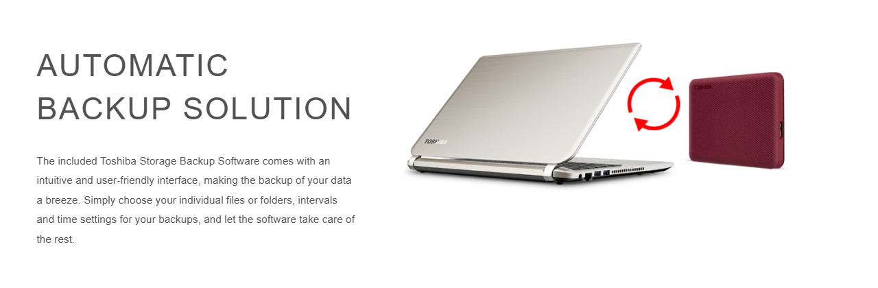 Toshiba Canvio Advance 4TB HDTCA40AK3CA comes with included Toshiba Storage Backup Software comes with an intuitive and user-friendly interface, making the backup of your data a breeze. Simply choose your individual files or folders, intervals and time settings for your backups, and let the software take care of the rest.
