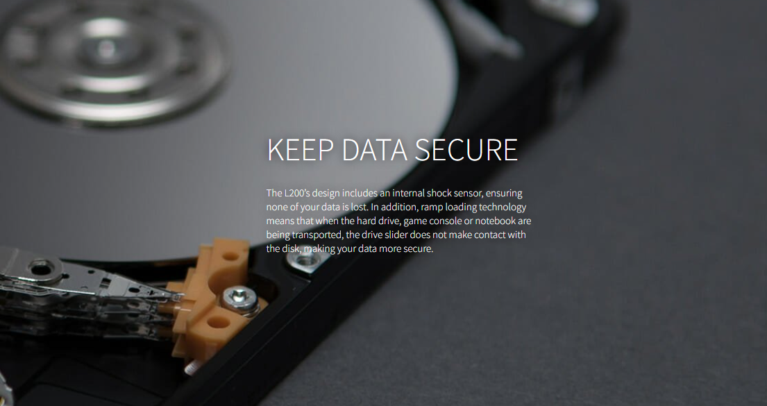 The Toshiba L200 1TB HDWL110UZSVA design includes an internal shock sensor, ensuring none of your data is lost. In addition, ramp loading technology means that when the hard drive, game console or notebook are being transported, the drive slider does not make contact with the disk, making your data more secure.
