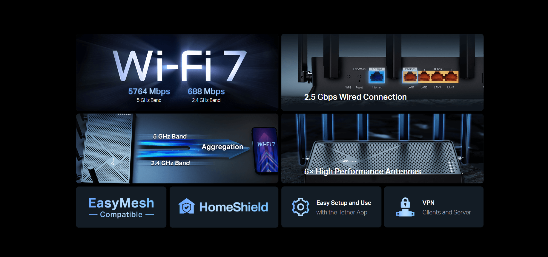 Archer Series (WiFi Routers) – High-speed WiFi 6 & WiFi 6E routers for home users, gamers, and small businesses. Features include dual-band, tri-band, MU-MIMO, and Beamforming.
