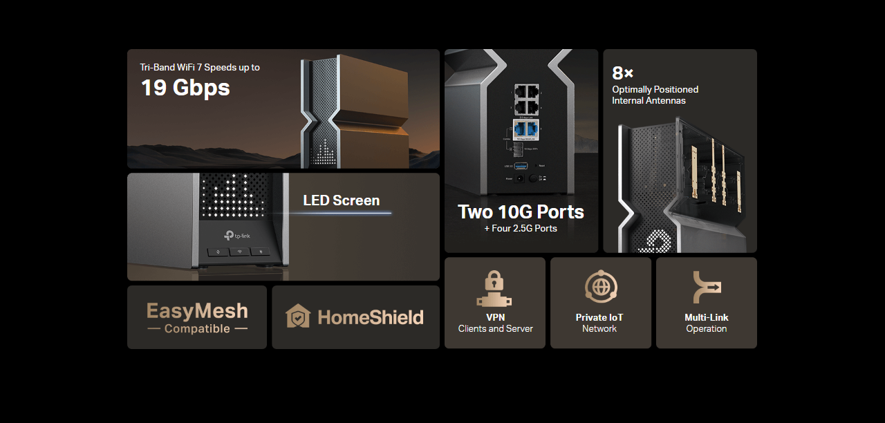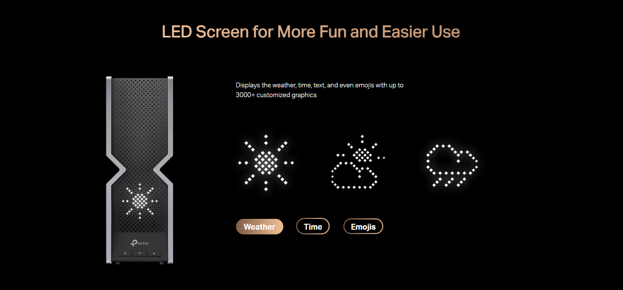 • Redefining WiFi Routers: With powerful WiFi 7 performance, lightning-fast wired connections, brand-new design, and LED screen.