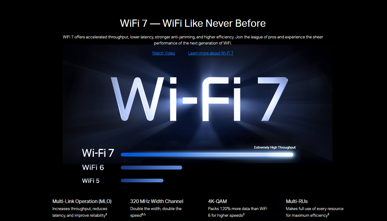 Advanced Functions• Multi-Link Operation (MLO) • 320 MHz Channel • 4K-QAM • Multi-RUs • EasyMesh-Compatible • Works with Alexa and Google Assistant • IoT Network