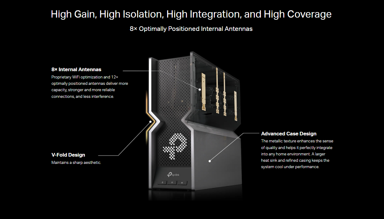 8× Optimally Positioned Antennas Multiple antennas form a signal-boosting array to cover more directions and large areasBeamforming Concentrates wireless signal strength towards clients to expand WiFi rangeHigh-Power FEM Improves transmission power to strengthen signal coverage