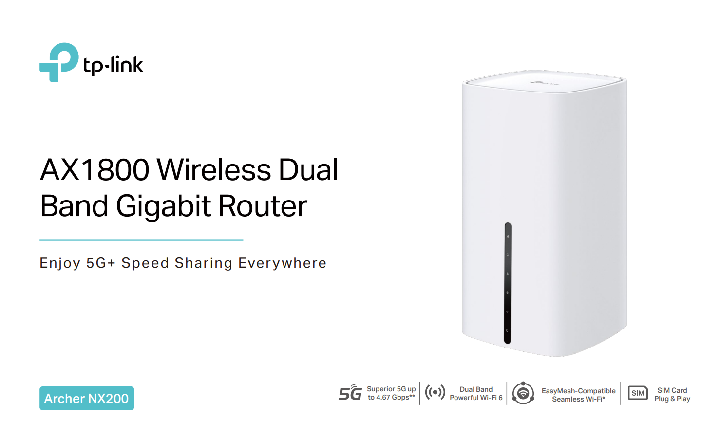 TP-Link Archer NX200 5G AX1800 comes With an intuitive setup via the TP-Link Tether app, robust parental controls, and advanced security features, the Archer NX200 is the perfect solution for high-performance 5G and Wi-Fi 6 connectivity.