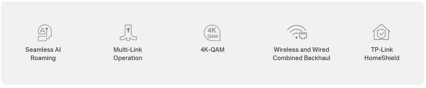 • Seamless AI-Driven Roaming – Forms a unified netwok with built-in AI-Roaming creating the ideal Wi-Fi solution for your home.