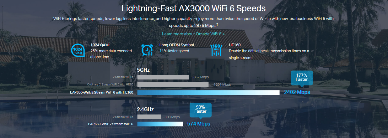 • Blazing-Fast AX3000 WiFi 6 Speeds:: Simultaneous 574 Mbps on 2.4 GHz and 2402 Mbps on 5 GHz totals 2976 Mbps WiFi speeds.