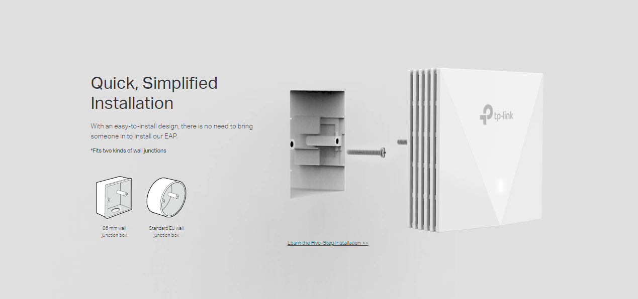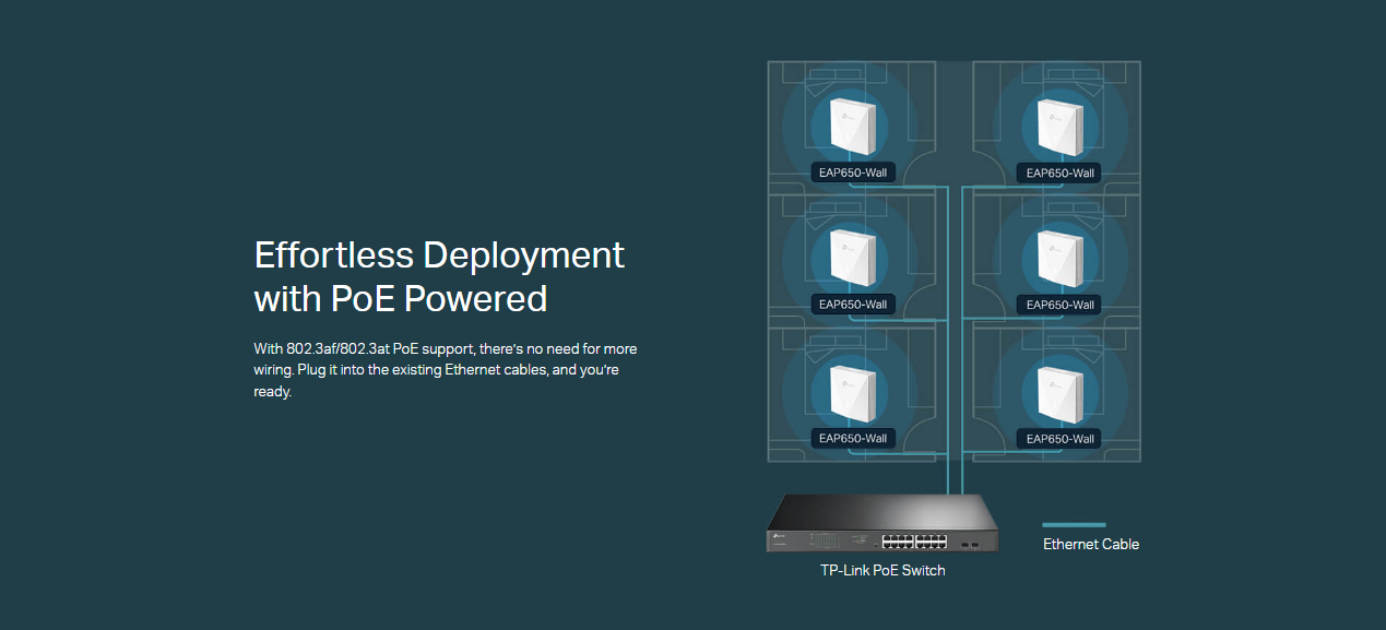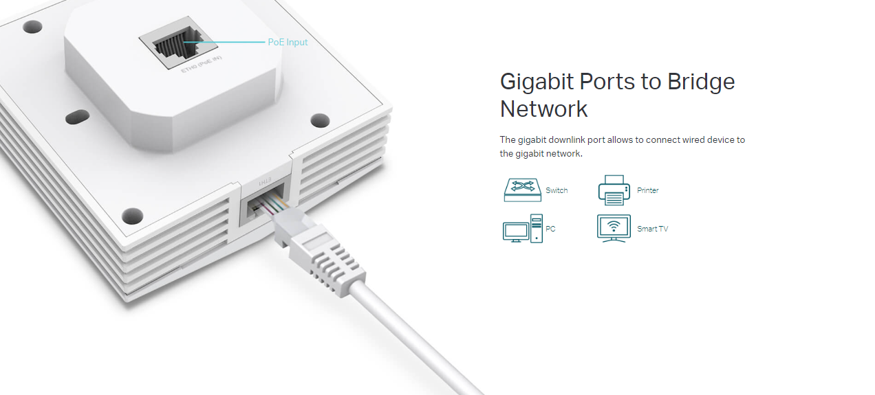 Featuring advanced WiFi 6 technology, the TP-Link EAP650 Wall Plate ensures smooth, reliable connectivity even when multiple devices are connected. With features like OFDMA and MU-MIMO, this access point allows efficient simultaneous communication with numerous devices, minimizing latency and optimizing network efficiency. TP-Link EAP650 Wall is Integrated with TP-Link’s Omada SDN, it offers centralized, cloud-based management for easy configuration and monitoring.