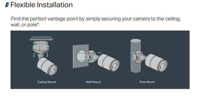 Package Contents• VIGI Network Camera • Quick Start Guide • Waterproof Cable Attachments • Mounting Accessories