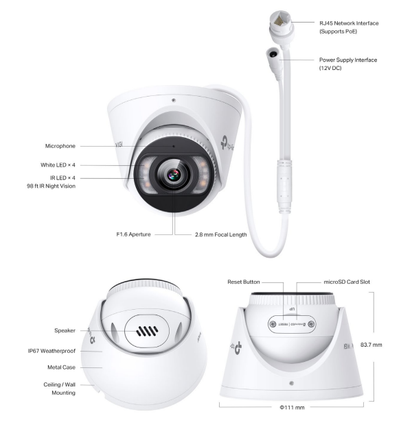Package Contents• VIGI Network Camera • Quick Start Guide • Waterproof Cable Attachments • Mounting Accessories