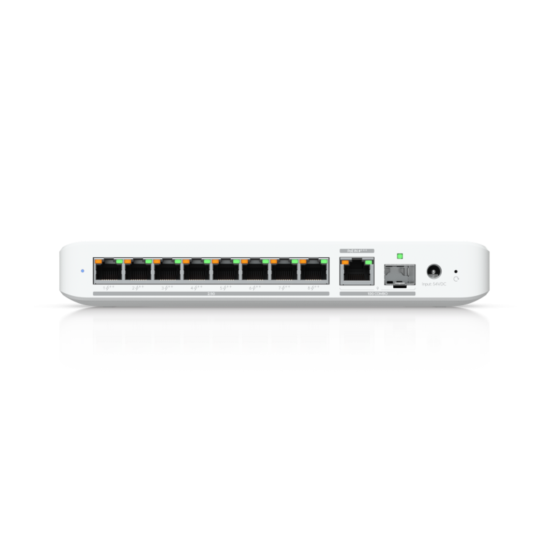 PoE Ports (RJ45)• Standard: 802.3 af/at compliant • PoE Ports: Ports 1–8, up to 30 W PoE output per port • Power Supply: 63 W