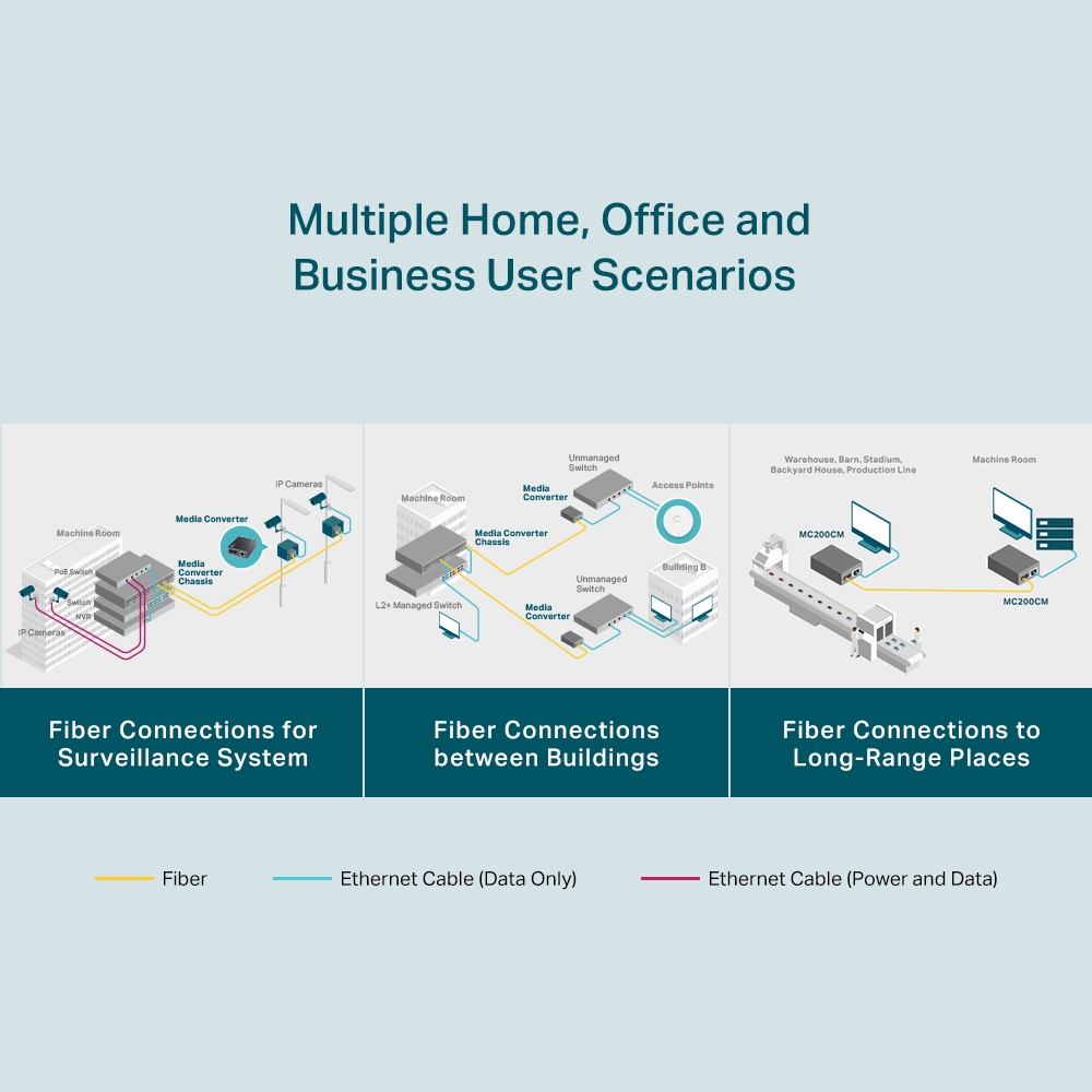 The TP-Link MC200CM Gigabit Multi-Mode Media Converter is designed to extend Gigabit Ethernet connections over multi-mode fiber, making it an ideal solution for high-speed data transmission over medium distances. TP Link MC200CM This converter converts 1000Mbps Ethernet signals from copper to 1000Mbps multi-mode fiber, supporting SC fiber connectors and enabling data transmission up to 550 meters (1,804 feet). TP Link MC200CM is Perfect for applications in campus networks, enterprise buildings, and data centers, the MC200CM  features auto-negotiation for 1000Mbps full-duplex mode, ensuring optimal data performance. With plug-and-play installation, this media converter simplifies network expansion and offers reliable, high-speed connectivity.