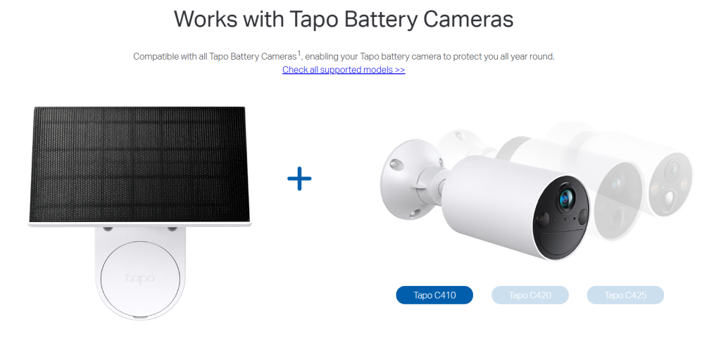 Device CompatibilityWorks with Tapo C400, Tapo C410, Tapo C420, Tapo C425 and more. Check all supported models >>