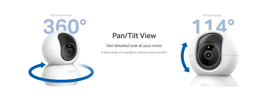 Pan & Tilt Coverage – 360° horizontal and 114° vertical movement for full-room visibility