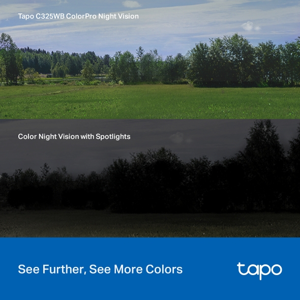 • ColorPro Night Vision-Provides professional protection by revealing bright-color images with help of Tapo C325WB without any spotlights even in ultra-low light conditions. Feel its superiority and experience daylight clarity during pitch-black nights.