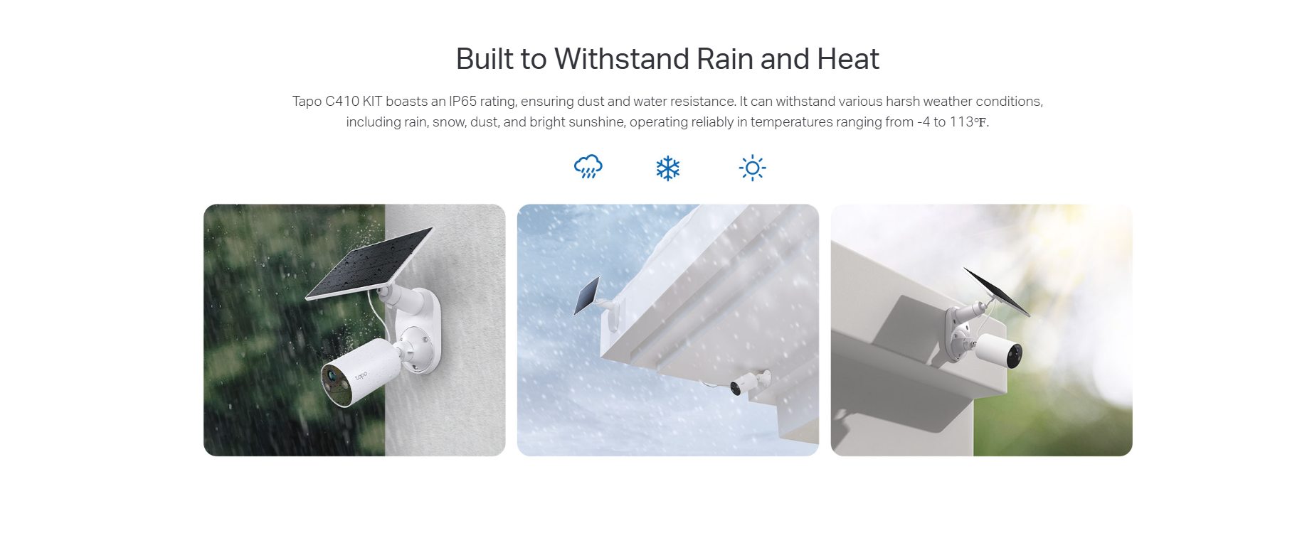 With its blend of advanced technology and sustainable design, the Tapo C410 KIT offers a reliable and maintenance-free security solution for your home or office.