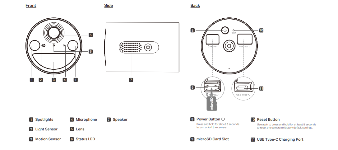 Power SourceBuilt-in Rechargeable Lithium-ion Battery Solar Panel: Tapo A201