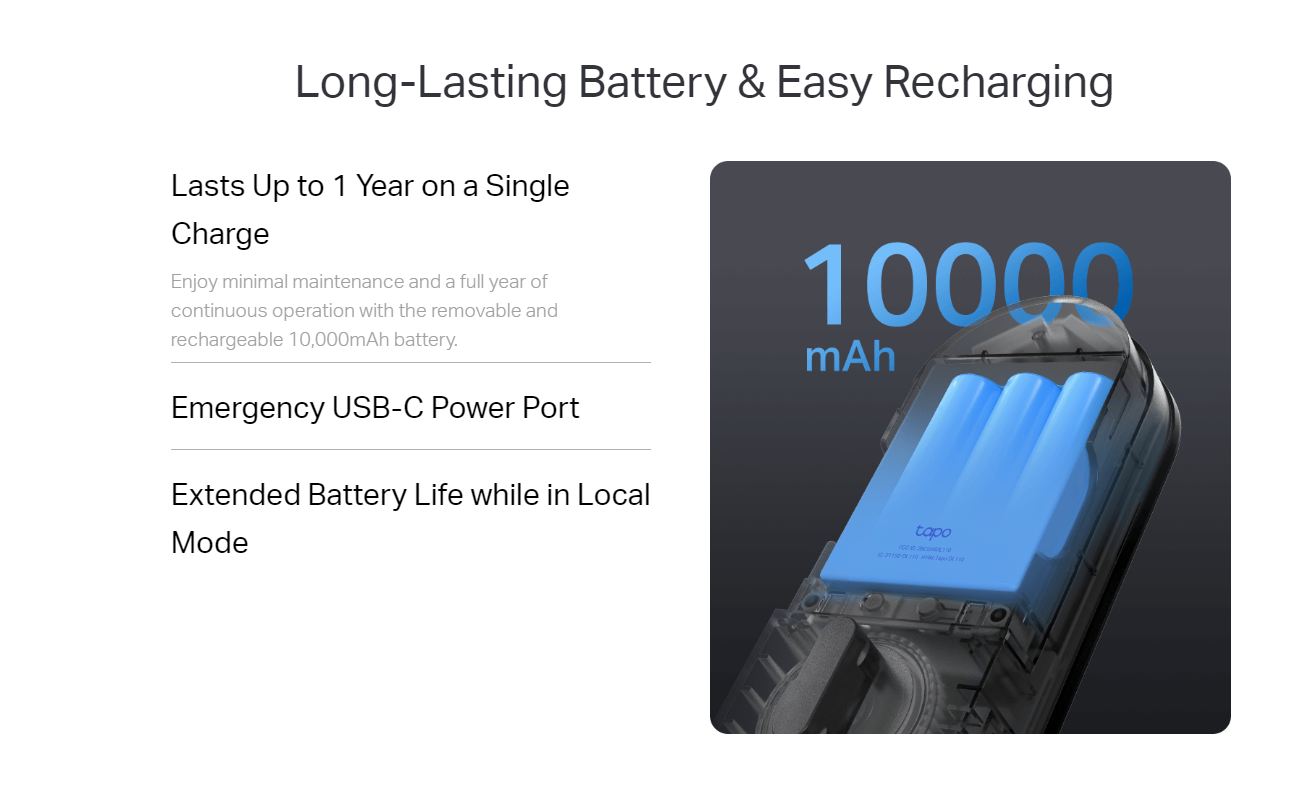 • Tapo App Integration: Manage access, track usage history, and receive notifications.